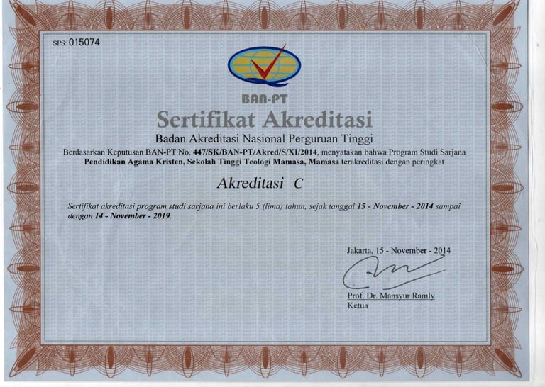 Program Studi S1 Pendidikan Agama Kristen